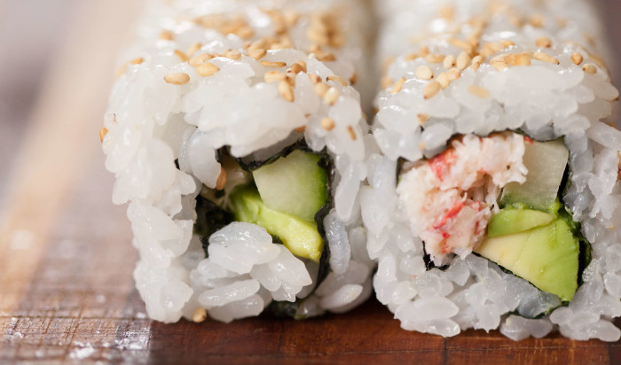 Uramaki are also called "inside-out rolls" because the rice is on the outside. They were invented by a Japanese chef to appeal to American customers in LA's Little Tokyo in the '60s. The rice hid the funky texture of seaweed, and the avocado provided a means of adding fat to regular tuna when toro (fatty tuna) was hard to find. The customers in LA loved this new creation so much they named it the California roll — and it's easily the most famous type of uramaki.