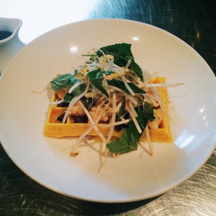 "I wasn't high, but it was one of those moments where I woke up and was like, 'Why don't I put that in the waffle iron?!'" she jokes. "It started off as a brunch item and then just got onto the all day, all night menu. That was kind of [another] catalyst of the invention — doing some kind of funky Vietnamese brunch."