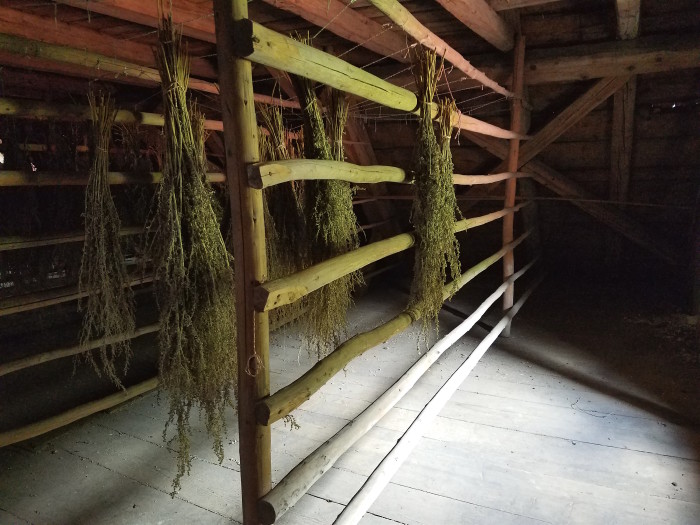 Martin dries all the herbs in the traditional way by hanging them upside down in a cool, dark place with good airflow for five to six months. The perfect spot for this task happens to be upstairs in that old château's creaky attic, a space complete with wobbly floorboards, cobweb-covered windows and a stairway so narrow you have to walk up and down it sideways. When Martin first moved in, he knew it had been used before to dry herbs for absinthe. After all, plants from the 1900s were still hanging from the rafters, and a table and chair were propped up on the side as if someone would be coming back.