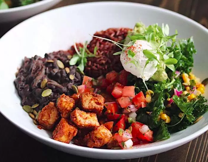 For something lighter, go for the modern burrito bowl: refried black beans, nacho-spiced tofu, red rice, kale corn salad, guacamole and micro-cilantro will definitely hit the spot without feeling too heavy.
