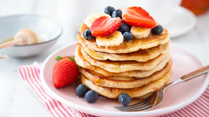 "For texture, I like to add toasted pecans or finish with a little butter and flaky salt," Stevens told us. "Or, for something lighter, Greek yogurt with honey and a dusting of Saigon cinnamon." You could also finish your pancakes with a garnish of fresh, seasonal fall berries like cranberries or pomegranates for a little extra flair.