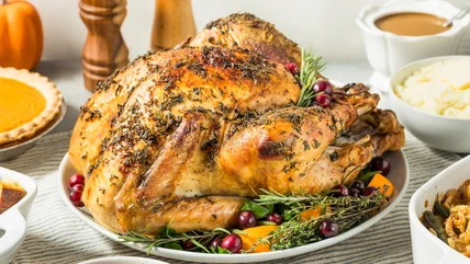 "If the bird has cooled, serving it [with] hot gravy will help," Gerard told us. With so many dishes to juggle during the holidays, another useful tip is to warm your plates in the oven before serving, which helps keep everything on the table perfectly hot and dinner-ready!