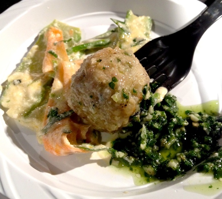 Meatball Shop's chicken meatball with carrot, zucchini and ricotta salad and parsley pesto
