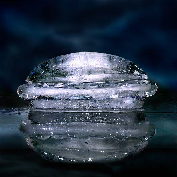 "Janet Tavener's photographs featuring sculpted ice freeze a moment in time, highlighting the temporality of life, and the precarious position of the environment as food production increases the demands upon the earth."[/caption]