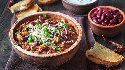 Beef became the natural choice for chili con carne as several tougher (and more accessible) cuts like brisket, chuck, or short ribs contain plenty of fat and connective tissue. These break down during the low-and-slow simmering process, resulting in tender meat and a deep, robust flavor that holds its own against other bold ingredients such as dried red chile pods, tomato paste, and kidney beans (balsamic vinegar also works great to give homemade chili some tang), whereas milder meats like pork and chicken might be overpowered.