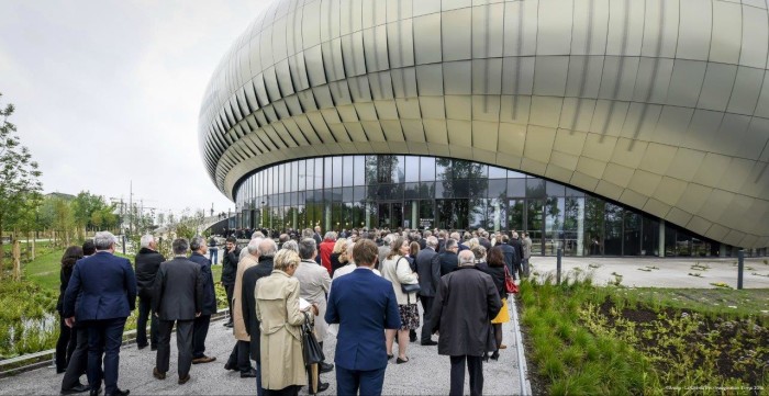 Architects Anouk Legendre and Nicolas Desmazières of the Parisian agency XTU dreamed up the audaciously fluid-looking facade, which is intended to evoke "the swirl of wine moving in a glass" and "the coiled movement of a grapevine," according to press materials. The curvy building was also designed to the mimic the undulating Garonne River, which the glassy, metal-clad facility looks out upon.
