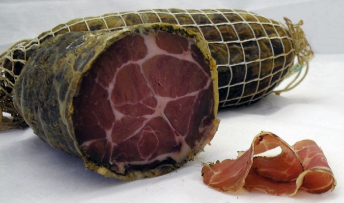 Modern food science is a valuable essence in regulating the unpredictable variables of the Cornish climate (pH, Aw testing and organoleptic checks are all standard), but time-honored techniques are at the heart of the process: prime cuts from selected producers, many within a 20-mile radius, are mixed with freshly ground herbs and spices before being carefully poured into natural casings. They're then hung up and left to slowly dry. As well as a legendary coppa, Deli Farm also produced excellent duck prosciutto and a luxurious smoked lamb prosciutto.