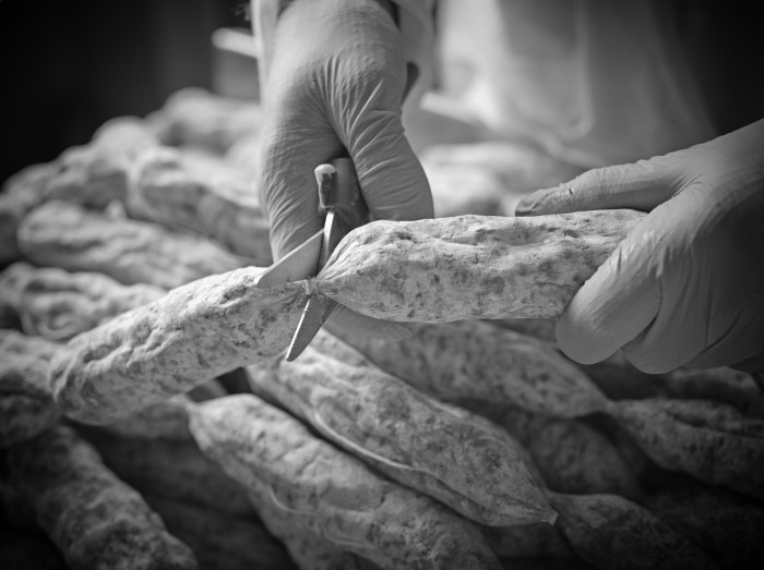 Crinieri agrees, pointing out that salami not only costs more to make with wine, but that the wine's subtle nuances would be lost on an industrial salami anyway. "You're forcing the process when you do a heat cure," he says. "Charcuterie is something that you can't rush if you want it to be proper, and you need those flavors to develop, including the wine. To do things the Old World, proper way, you can't rush it. It's a flavor investment."