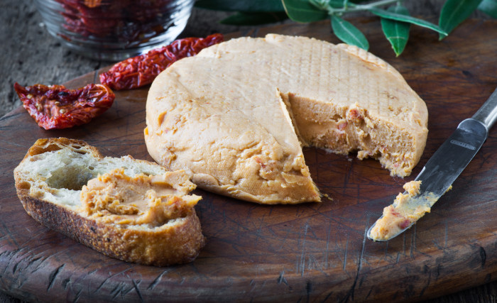 A large percentage of high-quality vegan cheeses resemble spreads, or slightly less-creamy versions of goat cheese. Since their texture closely mimics actual dairy, these are your best options for cheese plates. Serve these cheeses alongside crackers and sliced baguette with an array of accoutrements, or use as the main ingredient in fancy crostini recipes.