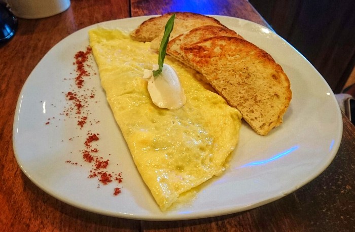 Another standout on the menu was the appropriately named "sweet and salty" sandwich: rich, earthy black beans and salty eggplant combined with sweet plantains and a sunny-side-up egg to provide the perfect mix of flavors. This was again complemented by that wonderfully zingy house sauce — a garlic cilantro aioli which I've since tried, and failed, to replicate. Also delicious is the feta and spinach omelette on light coconut flour toast and with a dollop of creamy, salty goat cheese on top.