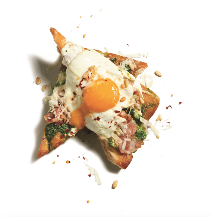 4. Green Eggs and Ham: pesto, double-cream ricotta, prosciutto crudo, pizza bianca