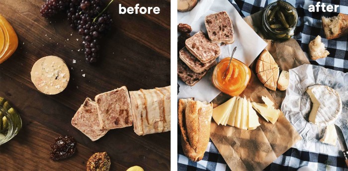 This is your photo, and you can move things if you want to! Half the fun of taking photos is the fantasy of it—your kitchen may look like a bomb went off in it, but your food photos can make that elaborate meal look easy. Putting some thought into setting the stage will help your photo tell a more compelling story—even if it's partly fiction.