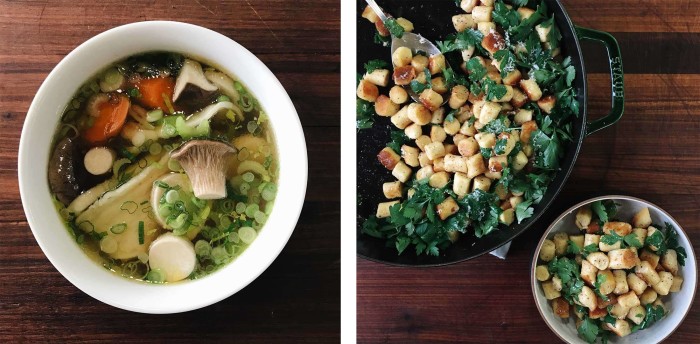 While we're on the topic of telling stories, don't forget to set the scene. For example, include silverware with your finished dish, as if you've just set the table and plated the food for the viewer. Throw a serving utensil into a homemade pint of ice cream or a ladle into a pot of soup to make sure your audience knows what they are looking at. Show off the process of cooking by putting a raw ingredient next to a finished product—making it clear that your little pink candies are indeed made from grapefruit.
