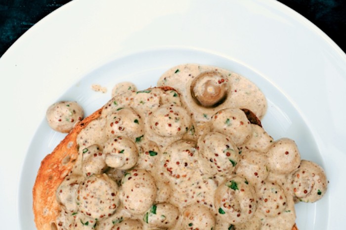 It's usually deviled kidneys you get on toast, but I like to devil mushrooms. You still get all the flavor, and you can share them with your vegetarian friends too.