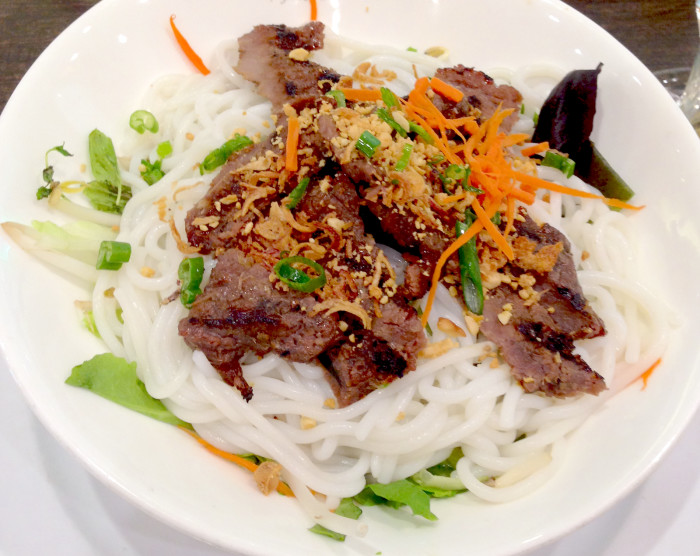This grilled pork rice noodle salad, courtesy of celebrated chef Kimmy Tang at Beverly Hills French-Vietnamese restaurant 9021PHO, is a simple but exotic dish with tons of flavor. The dressing is great for any salad that could use a bright Asian twist, so make extra and keep it in the fridge for a week in case for salads, marinades, noodles or even a light dipping sauce.