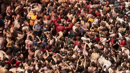 The fruity brawl isn't a standalone event — the hour is part of a week-long festival dedicated to the area's patron saints. Before tomatoes take center stage, parades fill the streets, and there's another food-themed competition involving a Spanish ham suspended atop a lofty pole. Traditionally, the tomato skirmish kicked off when someone snatched the cured meat, but nowadays, fireworks signal it's throw time.