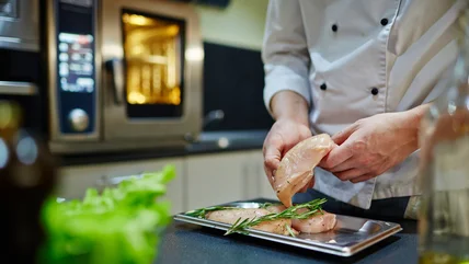 In its most stripped-down form, a chicken terrine involves white-meat poultry, herbs, shallots, and stock, all pre-cooked, then solidified together over an extended chill. Such a canvas opens to many complex interpretations. In addition to common add-ons like bacon and various herbs, chefs can incorporate dried fruit, nuts, or brandy, as well as add egg whites or cream for added decadence.