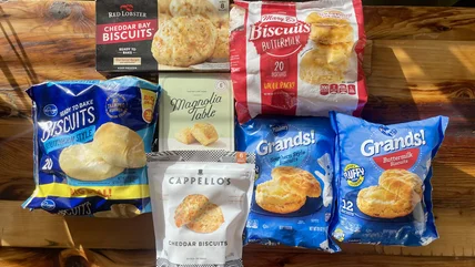 To rank frozen store-bought biscuit, I tasted them all after baking each product according to the directions on the packaging, paying close attention to the flavor and texture of each biscuit, which were the driving factors behind my ranking. I also considered price and mass appeal — would they be good with sweet and savory toppings, or are jam and honey off the table due to ingredient additions like cheddar and chives?