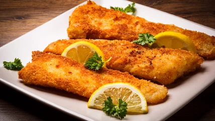 Shake 'N Bake is made by Kraft Heinz in various flavors, any of which you could use for fish, including Original Chicken, Extra Crispy, Crispy Buffalo, Crunchy Pretzel, and Parmesan Crusted. Choose a white fish like halibut, tilapia, cod, flounder, or Southern favorite catfish, which you can either leave as filets or cut, if thicker, into finger-sized, dippable pieces. Consider a firmer type if you plan to actually "shake" it with the breadcrumbs, and go easier than you would with a sturdier protein. You could also just coat the pieces with the breading on a plate instead. Either way, dip the fish in water, egg, milk, or mayo first to help the coating cling. In addition to putting it in the oven to "bake," you could also air-fry it or make it in a skillet.