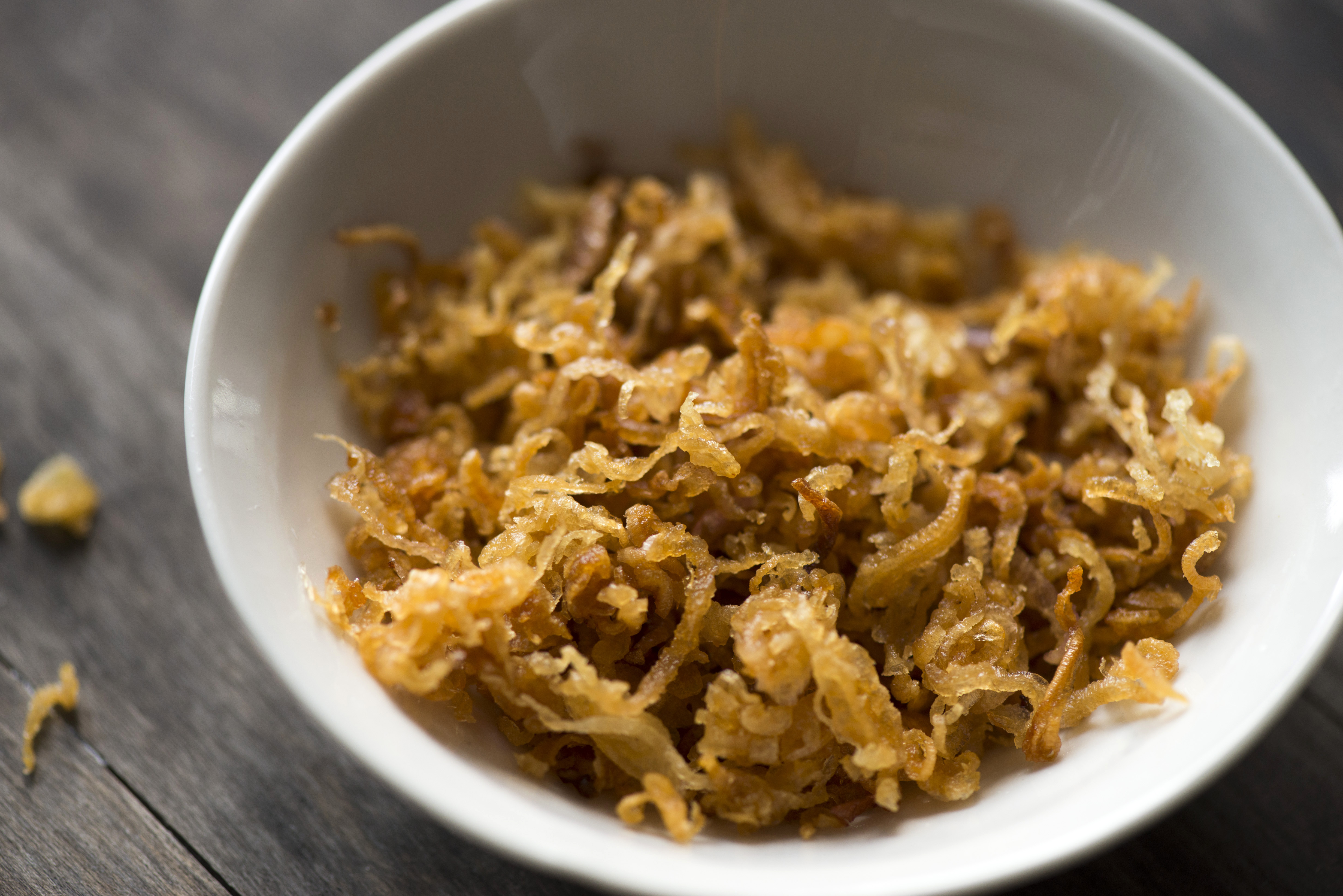 I've been obsessed with crispy shallots since my travels in Thailand, where they're a sort of improved version of their distant American cousin, the Durkee Fried Onion. The Thai ones are much lighter and crispier; rather than being coated in flour, they're simply fried in oil. You can buy them stateside at Asian markets, but I wanted to experiment with making them at home. Deep-frying worked fine, but it seemed like an incredible waste of oil. Then a Thai friend told me that home cooks sometimes microwave the shallots with the same results, and I'm happy to report after trying it that it works like a charm. Using way less oil (and making far less of a mess), the microwave method yields crispy strands of shallot that you'll want to put on everything — or simply eat as a snack.