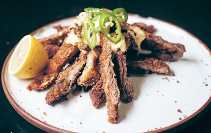 I've found that if I crumb food and fry it, my kids will eat it without hesitation. Seriously! My kids have had two versions of the one dad. The first version (draft model only) was happy for them to eat processed chicken nuggets. The second (full production model) does not approve of chicken nuggets, so version 2 dad sometimes makes food look like food from version 1 dad. The kids appear to be dumbfounded as they crunch through the fried-nugget-like meal. I guess they're wondering if it's some sort of trick. But it's not. We butchered our pig. I made the breadcrumbs from my sourdough, the mayonnaise with eggs and garlic from my backyard, and the lemon is from Mum's tree. So no trips to see the Kentucky chicken man with the beard. Instead they eat tucker from the Victorian bearded man with pork butt and a sneaky plan to get his kids to eat real, honest food.